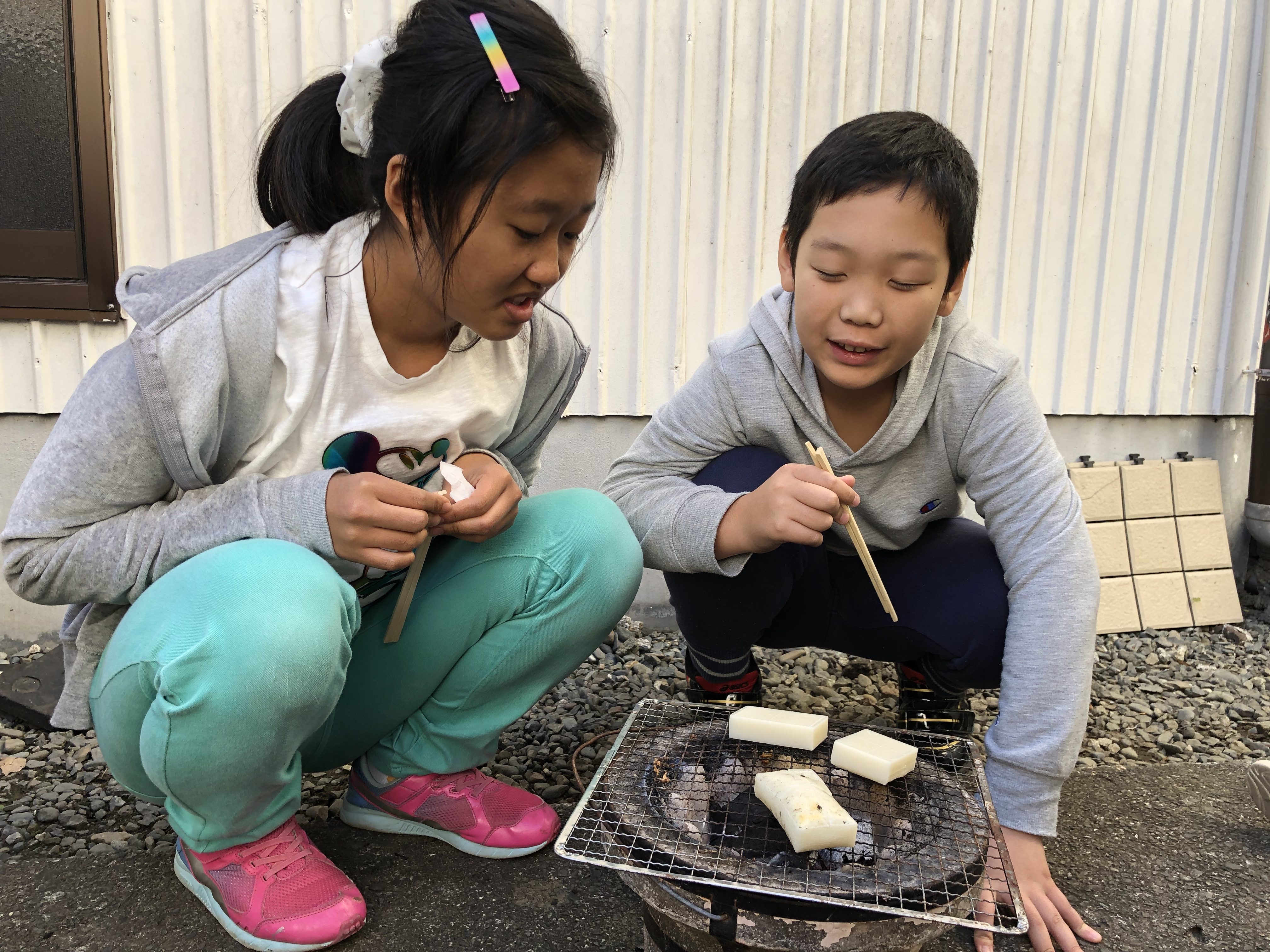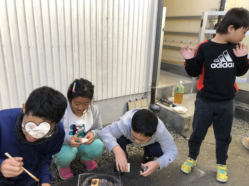 みんなでウインナーやお餅を七輪で仲良く焼き待ちました。