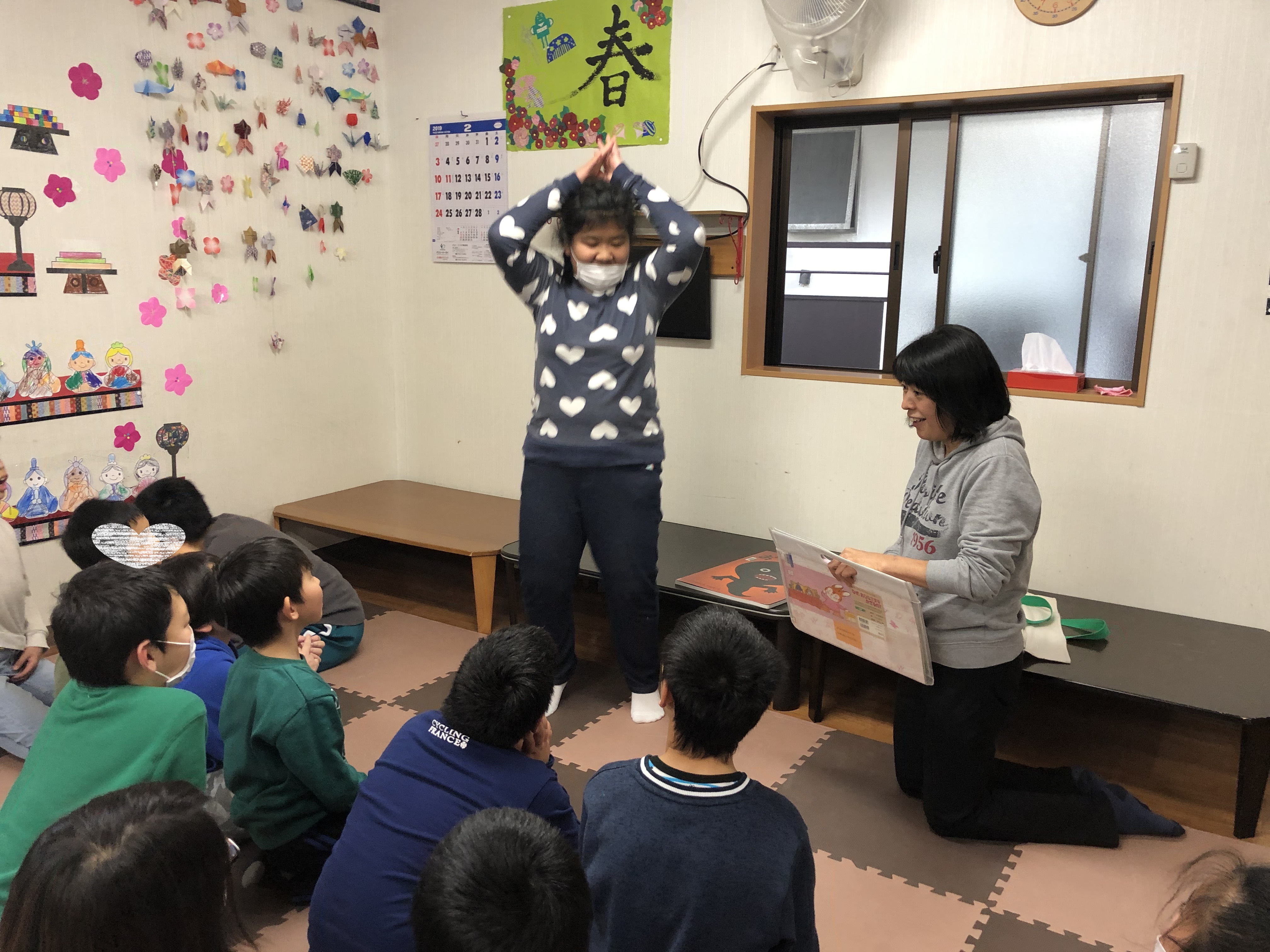 今日の読み聞かせは「なぜお雛様を飾るの」と「おばけだじょ」